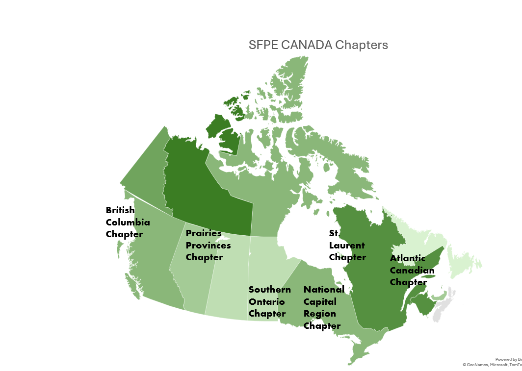 SFPE Canada/Association des ingenieurs enprotection incendie Canada supports the fire protection engineering community throughout Canada by providing a platform for professional development, technical exchange, and advocacy. With a focus on addressing local fire safety issues and regulations, SFPE Canada connects practitioners, researchers, and stakeholders to drive forward the profession and enhance public safety.